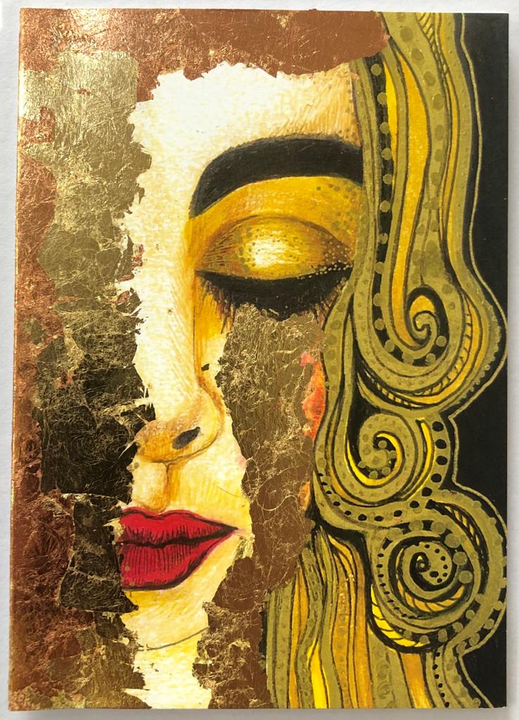 Gold Leaf: extremely thin & lightweight foil sheets used for gilding picture frames & artworks. Add an antique look to crockery, pottery or jewellery. A composite LEAF of copper, zinc & brass alloy, needs to be applied with an adhesive known as SIZE. Once the leaf has been secured & is dry, a coat of oil base VARNISH is applied.