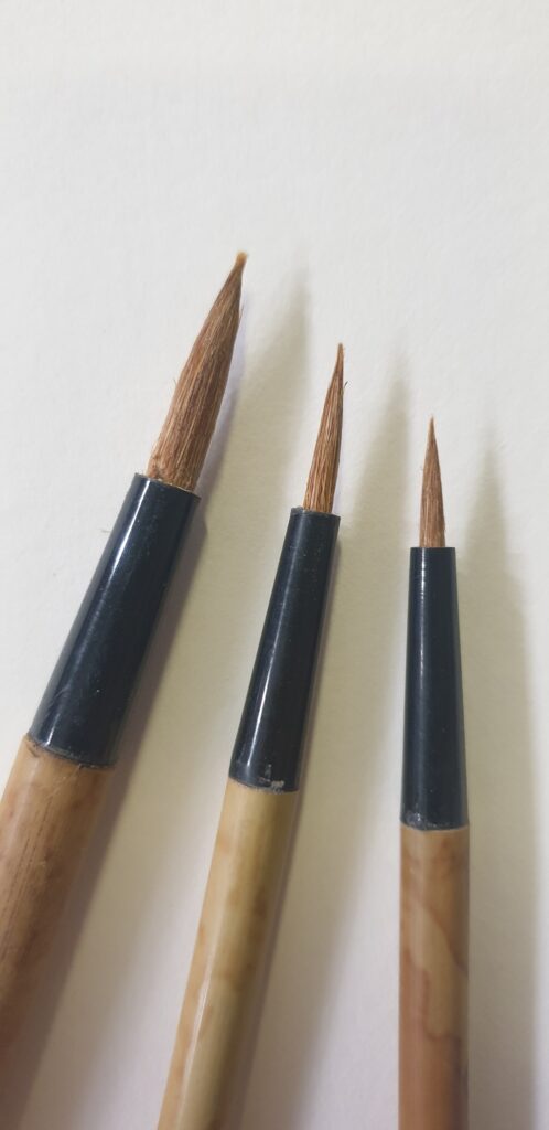 Bamboo Brushes are made with natural hair, plastic ferrules, bamboo handles and a string for drying in the appropriate position. They are great for watercolor, calligraphy, Sumi ink, and pottery glaze applications.